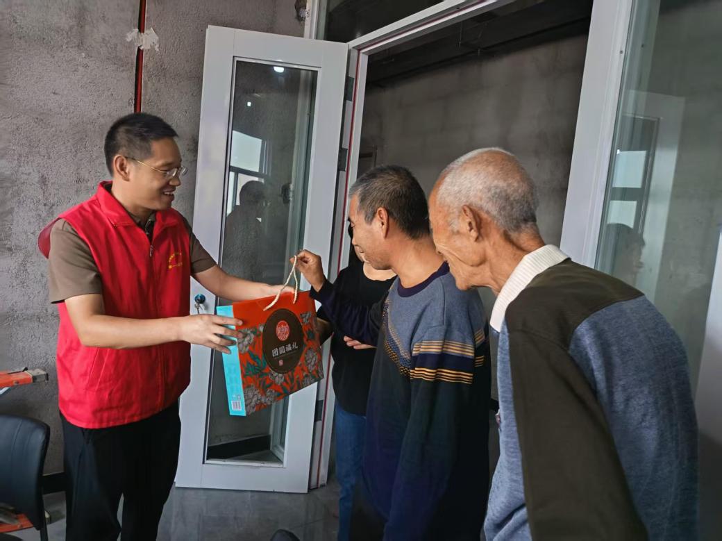 工作队提前谋划、精心组织,统筹准备月饼、鸡蛋等慰问物资,采取“集中发放与上门走访”相结合的方式,确保关怀覆盖到位。在村委集中发放点,工作队与群众亲切交流,详细了解家庭收入、健康状况、政策落实等情况;针对行动不便的村民,工作队分组入户,将慰问品送至家中,让特殊群体足不出户感受到组织的温暖。慰问过程中,工作队队员与群众面对面拉家常、听诉求、问困难,细致记录群众反映的急难愁盼问题,并结合当前乡村振兴政策现场答疑解惑。一句句暖心问候,一次次耐心倾听,拉近了干群距离,也让群众切实感受到党和政府的牵挂与支持。此次活动不仅是节日的问候,更是驻村工作队履行帮扶职责、推动政策落地的重要体现。